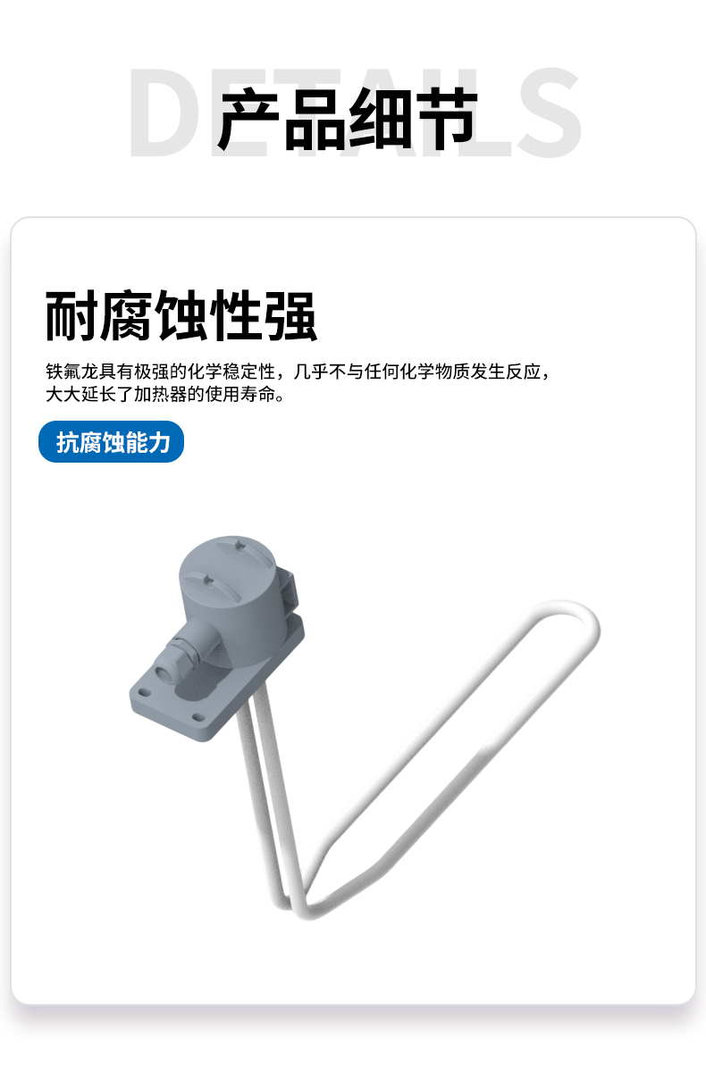 铁氟龙加热管化工行业反应釜酸洗槽PTFE四氟电加热器电镀槽发热管源头厂家