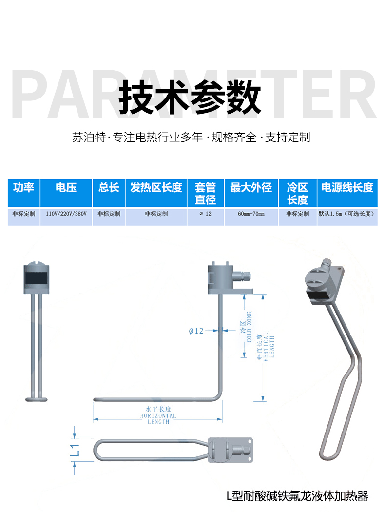 欢迎电询更多L型铁氟龙加热管详情